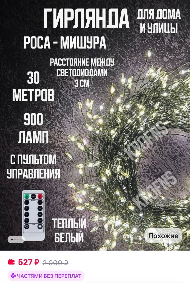 Krofns Home Гирлянда мишура роса светодиодная с пультом 30м