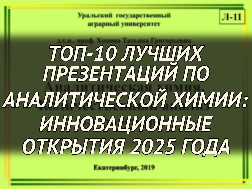 В этой статье мы представляем топ-10 лучших презентаций по аналитической химии, отобранных на основе их инновационности, графики и практической применимости. Составленный для 2025 года рейтинг включает работы ведущих экспертов, которые вдохновят вас на новые открытия и помогут освоить передовые методы анализа, такие как хроматография, спектроскопия и электрохимия.