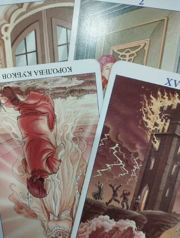 «Почему мне тревожно, даже когда всё “хорошо”?» Луна — 7 Мечей — Королева Кубков (перев.) — 2 Жезлов — Башня Первая карта — Луна.