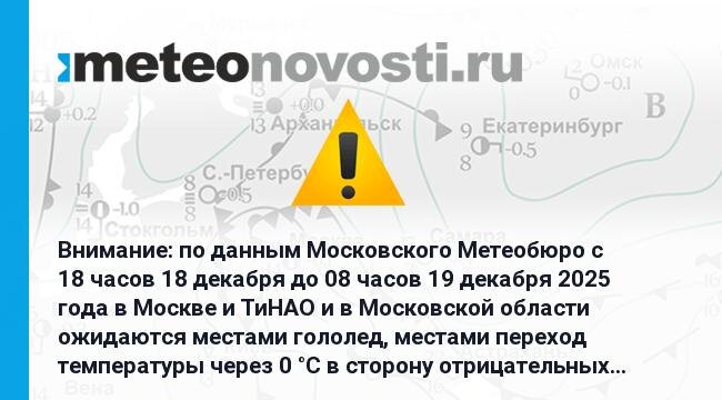 Внимание: по данным Московского Метеобюро c 18 часов 18 декабря до 08 часов 19 декабря 2025 года в Москве и ТиНАО и в Московской области