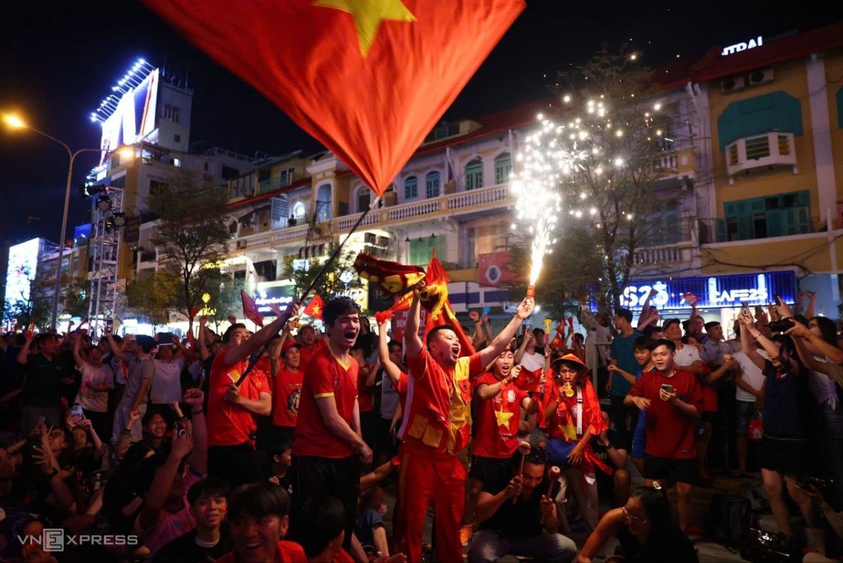 Футбольные болельщики сегодня вечером на улицах города Хошимин