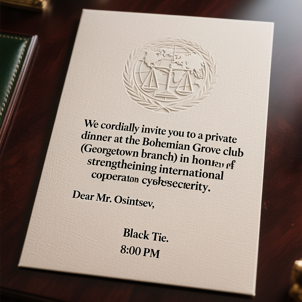Тишина длилась неделю. Десять дней. Она была настолько густой, что звон телефона заставлял вздрагивать. Но вместо угроз пришло официальное приглашение — на бланке одного из самых влияющих вашингтонских лоббистских бюро. «Уважаемый господин Осинцев. Примите наше любезное приглашение на приватный ужин в клубе «Богемиан Гроув» (филиал в Джорджтауне) в честь укрепления международного сотрудничества в сфере кибербезопасности. Черный галстук. 20:00.»