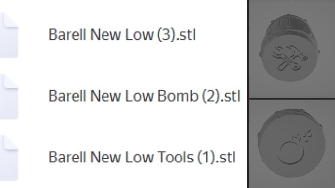 Загрузили новые 3D модельки для бочек в игре Битва Големов. Теперь на дне у бочек есть их содержимое. В скобках указано сколько бочек какого вида надо напечатать.