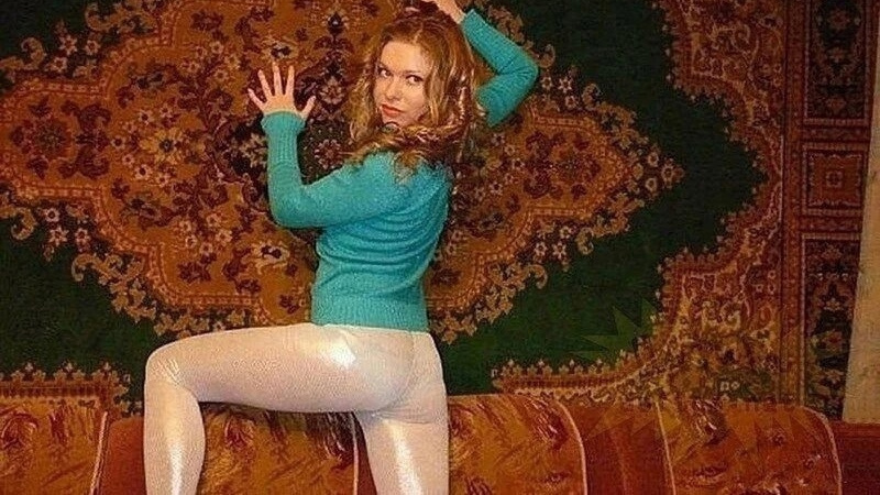 Поза героини нарочито театральна: она словно сливается с узором, подчиняет его себе, становится частью орнамента. Яркий свитер, блестящие лосины, диван — всё это визуальный словарь времени, когда эстетика формировалась из журналов, телешоу и смутных представлений о «красивой жизни». Это не ирония и не пародия, а вполне искреннее желание выглядеть эффектно здесь и сейчас.