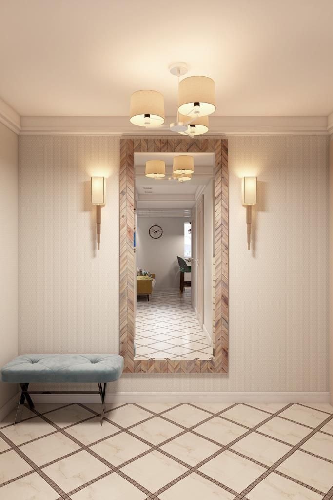 Таким расположением зеркала, нам удалось украсить стену в прихожей и позволило организовать широкий угол обзора, позволяющий видеть себя полностью, одевая верхнюю одежду около гардероба. Проект - #АЧ_Функциональный_Аспект