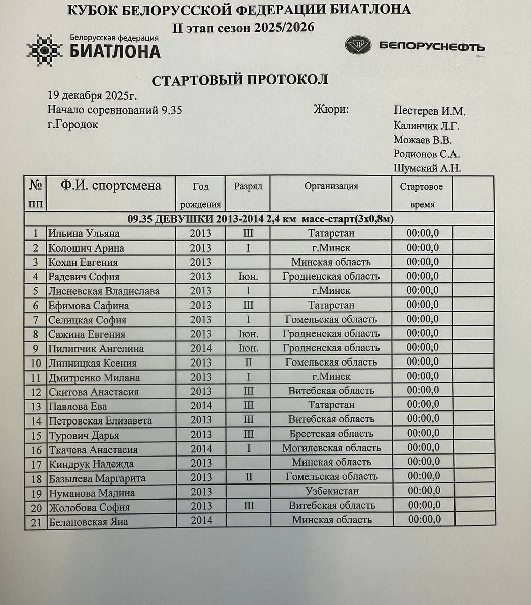 Городок Первый старт - 9:35 Программа 19.12 масс-старт 9:35 - девушки (2013-2014) гг.р. 2,4 км 10:00 - юноши (2013-2014) гг.р. 3 кМ 11:00 - девушки (2011-2012) гг.р. 4 км 11:30 - Юноши (2011-2012) гг.р 5 км 12:35 - девушки (2009-2010) гг.р. 6 км 13:15 - юноши (2009-2010) гг.р. 7,5 км 14:35 - девушки (2007-2008) гг.р. 7,5 км 15:20 - юноши (2007-2008) гг.р. 10 км Спортивное вещание Масс-старт https://youtube.com/live/z0Sf0nz5gr4?feature=share