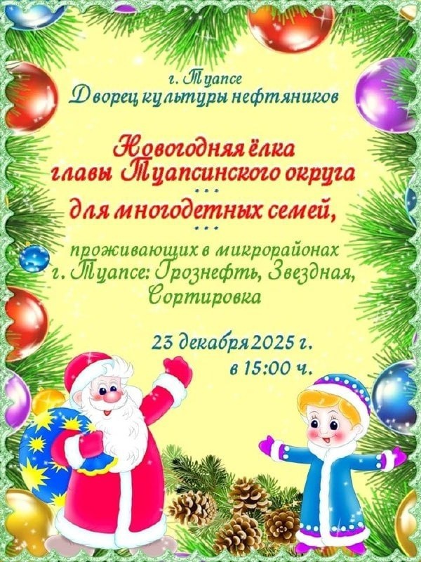 Туапсе: Грознефть, Звёздная, Сортировка во Дворце культуры нефтяников им. А.С. Яровенко ⏰ 23 декабря в 15:00 📍 ДК Нефтяников (г. Туапсе, Сочинская ул., 48) 🎄 Насладитесь праздничной атмосферой со своими детьми,и получите подарки от Деда Мороза! @tuapse_afisha #новыйгод #Туапсе #афишаТуапсе #кудасходитьвТуапсе #декабрь #детям