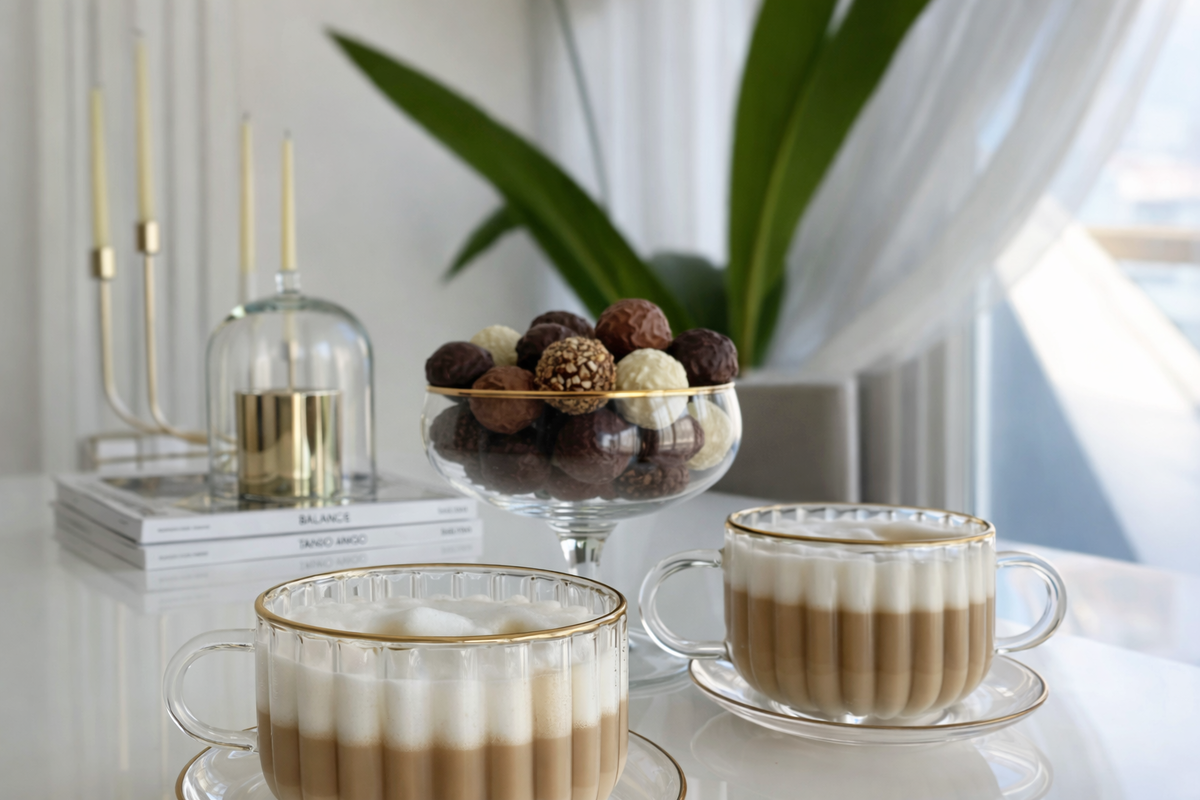 Эстетичная чайная пара с чашкой и блюдцем ручной работы — отличный выбор для подачи горячих или холодных напитков. Оригинальная форма «тыквы» и легкое боросиликатное стекло делают посуду необычной, стильной и практичной. Объем чашки 400 мл, она долго сохраняет тепло напитков и не впитывает цвет. Блюдце выполнено из стекла высокого качества, что делает сервировку элегантной и аккуратной. Такая пара подходит не только для домашнего использования, но и для кафе, ресторанов или офиса. Этот набор станет прекрасным подарком для любого человека — мамы, бабушки, сестры, девушки, коллеги или друга, на день рождения, новоселье, 8 Марта, 14 февраля или просто так. Благодаря оригинальному дизайну, чайная пара добавляет уют и эстетичность любому столу. 👉 Хотите сделать чаепитие особенным? Смотрите полную коллекцию наших стильных чайных пар по ссылке здесь и выберите идеальный подарок или акцент для дома.