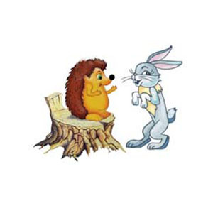 Жили-были еж Умник и заяц Лапка. Познакомились они совсем недавно. Первым дружбу предложил заяц. - Давай дружить, еж, - сказал заяц. – Вот только не знаю, состоится ли наша дружба, ведь ты такой умный, а я обычный заяц. - Ну, давай попробуем, - согласился еж Умник. – Для начала я задам тебе несколько вопросов. А ты будешь на них отвечать. - Кто такой «лодырь»? – спросил еж Умник. Заяц не знал ответ на этот вопрос, но он нахмурил бровки и с умным видом ответил: - Лодырь – это владелец лодки. Лодырь и лодка ведь похожие слова! – сказал заяц Лапка. Еж хмыкнул и продолжил дальше. - Кто такой кузнечик? – задал вопрос еж. - Кузнечик – это сын кузнеца, который в деревне живёт. - Да, - проговорил еж, - у тебя на все свое мнение, - хорошо, я буду с тобой дружить. Видно, что у тебя не ветер в голове. - Конечно, у меня не ветер в голове, ветер вон, по кустам гуляет, - сказал заяц Лапка. Еж не обратил внимания на эти слова. За дальними соснами он заметил бегущего волка и сказал зайцу прятаться: -