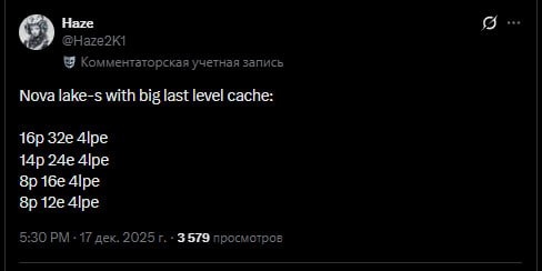 В утечках по настольным процессорам Intel Nova Lake всплыли подробности о моделях с увеличенным кэшем bLLC