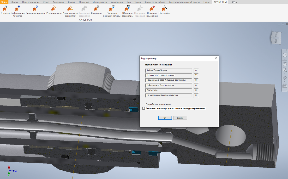 По аналогии с функционалом PLM-компонентов для других CAD, в PLM-компоненте для Inventor расширен и систематизирован контроль загрузки данных в систему Appius-PLM. Особое внимание уделено предварительной проверке моделей с целью предупреждения создания дублей в базе данных Appius-PLM.