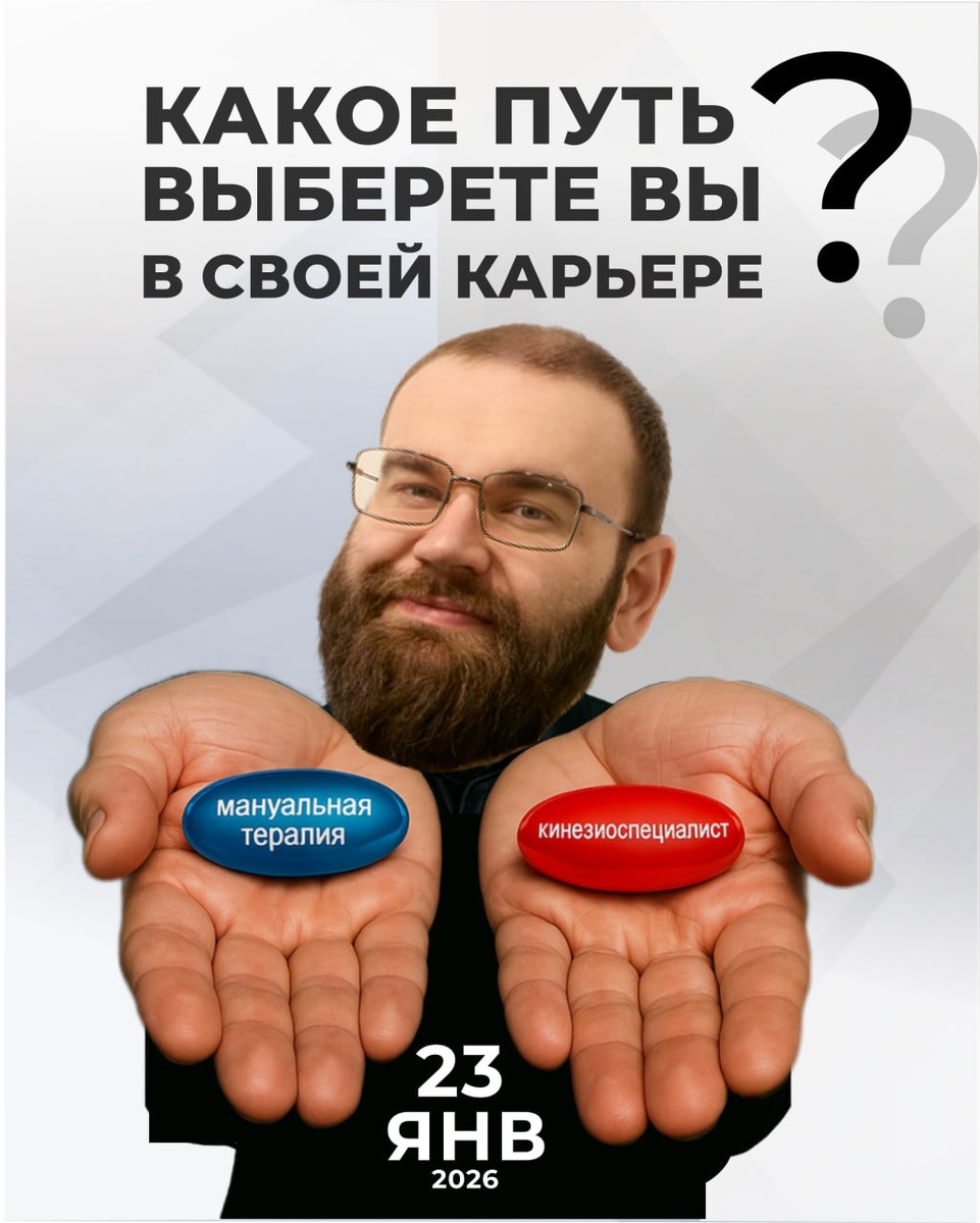 ? 🤲Мануальная терапия даёт сильный «ручной» инструмент: точность, контроль, уверенность в техниках и умение быстро менять состояние пациента — когда результат ощущается сразу. 🏃♂️Кинезиоспециалист / физическая реабилитация даёт сильный «двигательный» инструмент : тестирование, выстраивание программ восстановления и результат, который держится, потому что тело начинает двигаться правильно. ✅ Каждое обучение по-своему хорошее ,но путь выбираете Вы - какой формат вам ближе и каким специалистом вы хотите стать уже через несколько месяцев. 📅 Старт у обоих программ: 23 января ⭐️ 520 ак.часа 🎤 Обучение ведут опытные практикующие специалисты, с акцентом на прикладные навыки Выбирайте Ваш маршрут обучения в 4Clinic 👇 🔹 Мануальная терапия — программа и подробности: ссылка 🔹 Кинезиоспециалист — программа и подробности: ссылка