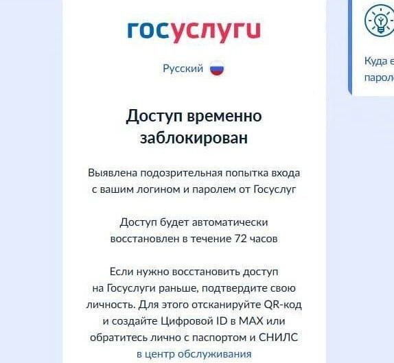 ✨ ❗️Вам заблокируют Госуслуги, если пользоваться VPN — в приложении это называют «подозрительной активностью» Для разблокировки придётся подождать 72 часа или (сделайте удивленное лицо) подтвердить свою личность через госмессенджер MAX 👉 Прислать новость 💥 Проект "Чехов Детям"