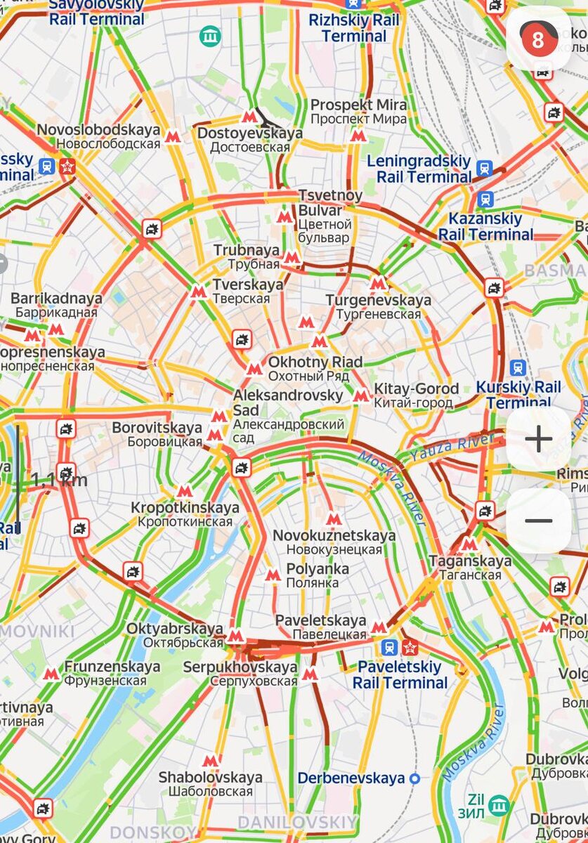 🚘 8 баллов пробки в Москве – центр города встал.
