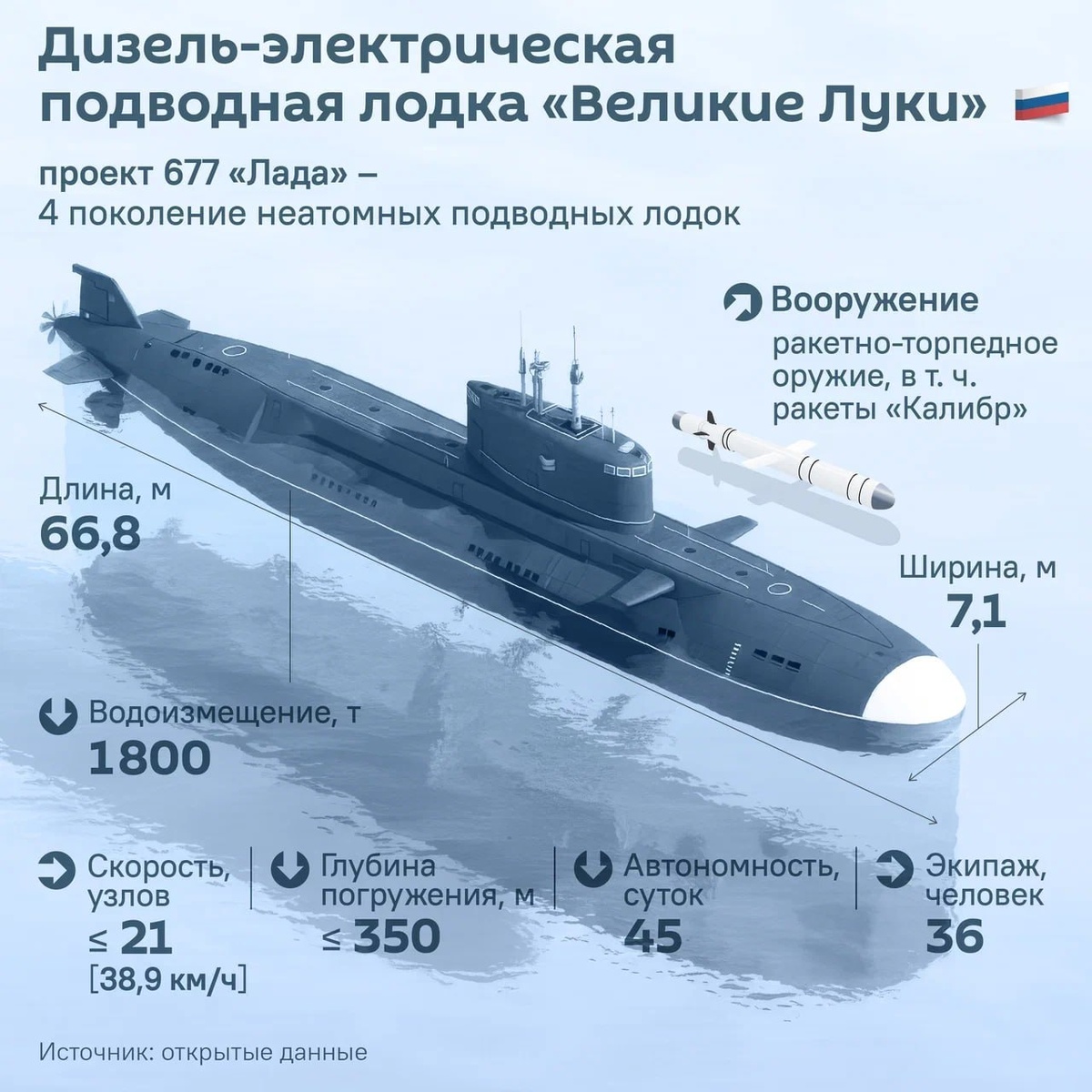 Это третья субмарина серии. Ранее построенный "Кронштадт" несет службу на Северном флоте. В перспективе "Лады" должны поступить на вооружение всего ВМФ РФ, став основой неатомного российского подводного флота.