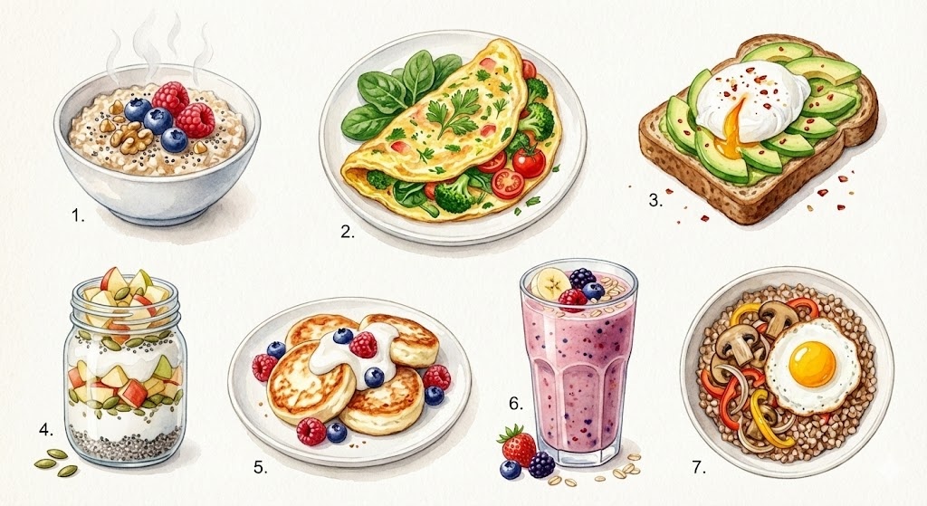 Вот подборка завтраков “по совету нутрициолога” — сбалансированные, с белком, клетчаткой и полезными жирами. Подойдут для обычных будней и поддержат энергию до обеда. Почему полезно: сложные углеводы + клетчатка + полезные жиры. Совет нутрициолога: не добавляй сахар — сладости от ягод достаточно. Почему полезно: качественный белок + микроэлементы. Почему полезно: полезные жиры + белок + энергия надолго. Почему полезно: пробиотики + белок + лёгкость. Почему полезно: белок + кальций, без резких скачков сахара. Почему полезно: легко усваивается, хорошо после раннего подъёма. Почему полезно: железо + клетчатка + длительная сытость. #завтракдляпохудения