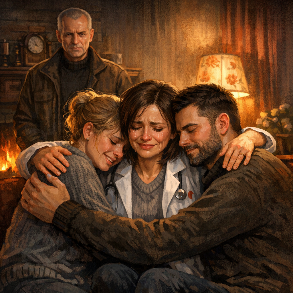 Не помню, как добежала до них – ноги сами несли. Просто упала в их объятия, и мир сузился до этого тесного, тёплого круга из трёх человек, которые слишком долго были разлучены. Я обнимала их обоих сразу, прижимаясь щекой к Маше, чувствуя её тонкие плечи под мягким свитером, вдыхая запах её шампуня – тот же, что и раньше, с ноткой ромашки, – и к Даниле, ощущая его надёжную, мужскую силу, тепло тела и лёгкий запах моря, который, казалось, всё ещё цеплялся за его одежду.