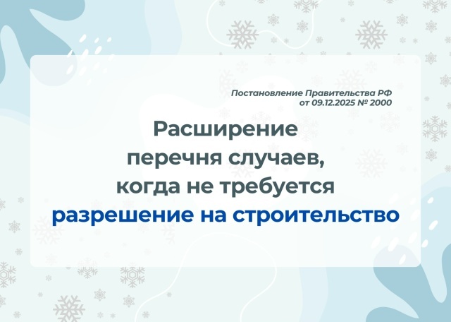 Правительство РФ внесло изменения в перечень случаев, когда не нужно получать разрешение на строительство для ряда объектов сферы авиации и пунктов пропуска через госграницу. Что изменилось: 1. для авиационной инфраструктуры больше не потребуется разрешение на строительство: 2. для автомобильных пунктов пропуска через госграницу упрощено строительство зданий и сооружений для пограничного, таможенного и иного контроля, если: Новые правила вступили в силу 17 декабря. Ознакомиться с полным текстом постановления можно по ссылке