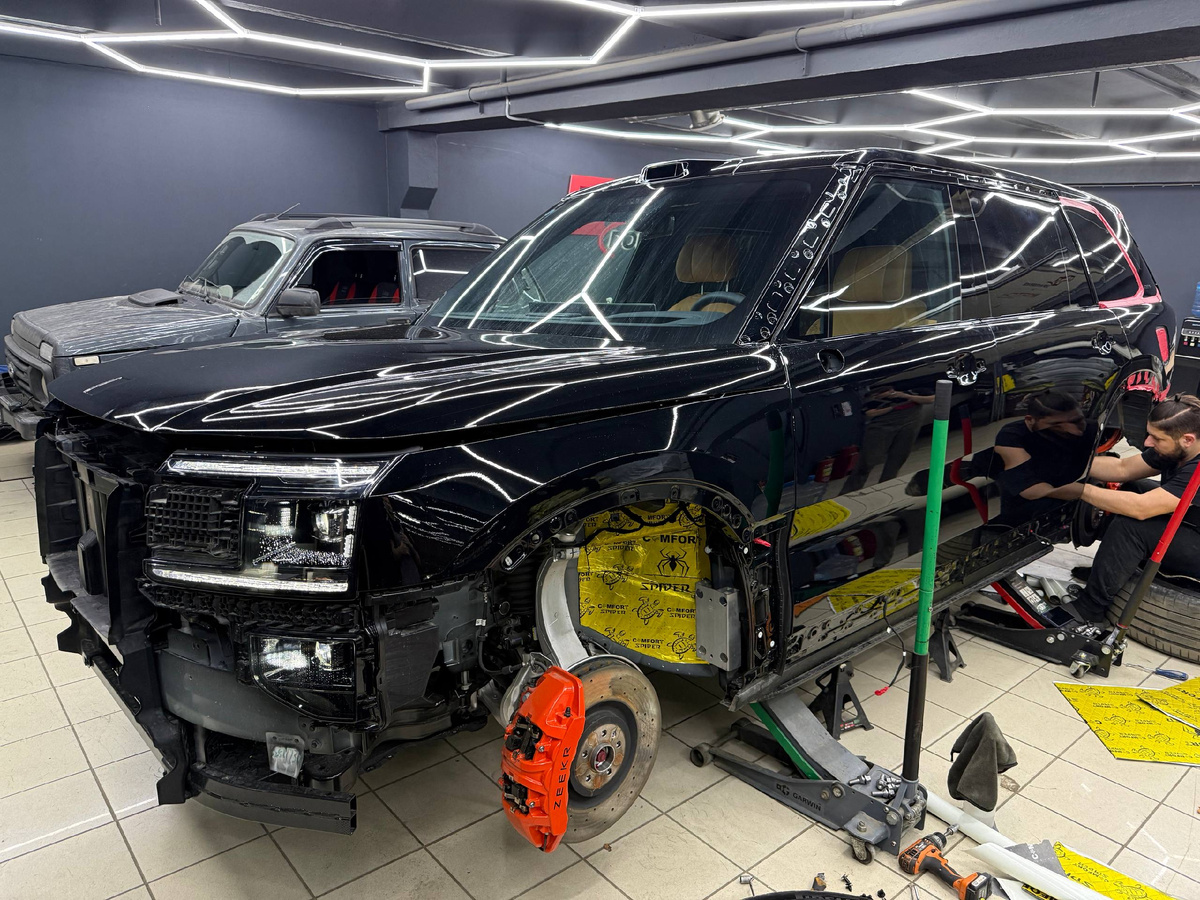 Zeekr 9X — автомобиль премиального уровня, и работа с ним требует точности. Для правильной оклейки полиуретановой плёнкой мы частично демонтировали элементы экстерьера. Это позволяет выполнять проклейку с подворотами, встык, без натягов и без «лестниц», обеспечивая идеальную геометрию линий и максимальную защиту. Полиуретан надёжно защищает кузов от: