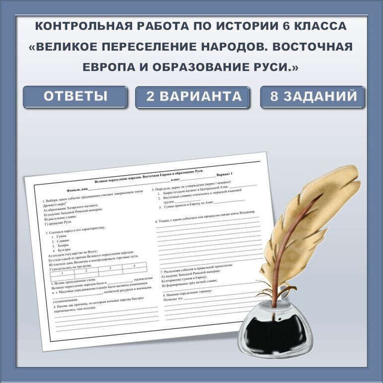 Контрольная работа по теме «Великое переселение народов на территории современной России. Государство Русь», история России, 6 класс. УМК. авт. В. Р. Мединский, А. О. Чубарьян "История России".