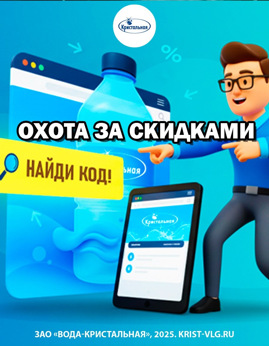 ! 10 промокодов на скидку -10% спрятаны на сайте, в описании товаров на разные объемы воды! Найди - сэкономь на заказе. Не найди - заплатишь полную цену. Вчера давали 5%. Сегодня 10%. Завтра снова может быть 5% или 3%. Бери удвоенную скидку, пока активна. 🔍🟨 Видишь желтую кнопку «Найди код!» на товаре? Жми! Внутри описания каждого товара спрятана секретная комбинация на дополнительную скидку -10% к этому товару. Код выглядит как часть обычного текста - тот же шрифт, тот же размер. 👁 90% находят за 30 секунд чтения в среднем. Сможешь быстрее? Квест: 4 действия до экономии 1️⃣ Открой карточку с желтой кнопкой 2️⃣ Читай описание товара 3️⃣ Копируй найденный промокод 4️⃣ Вставь в корзину - скидка применится мгновенно 💸Чем больше корзина - тем толще кошелек 20 бутылей 18,9л «Кристальной на каждый день»: 560₽ остались в твоем кошельке 50 бутылей для офиса «Кристальной на каждый день»: сэкономил 1400₽ одним промокодом 💨 Коды живут до полуночи, потом обнуление В 00:01 все 10