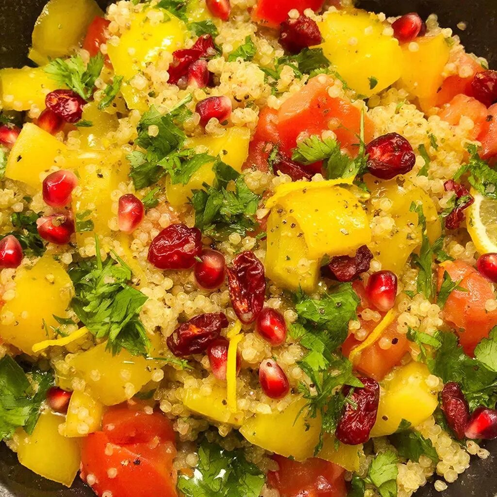 - Все ингредиенты смешайте с киноа в глубокой салатнице.