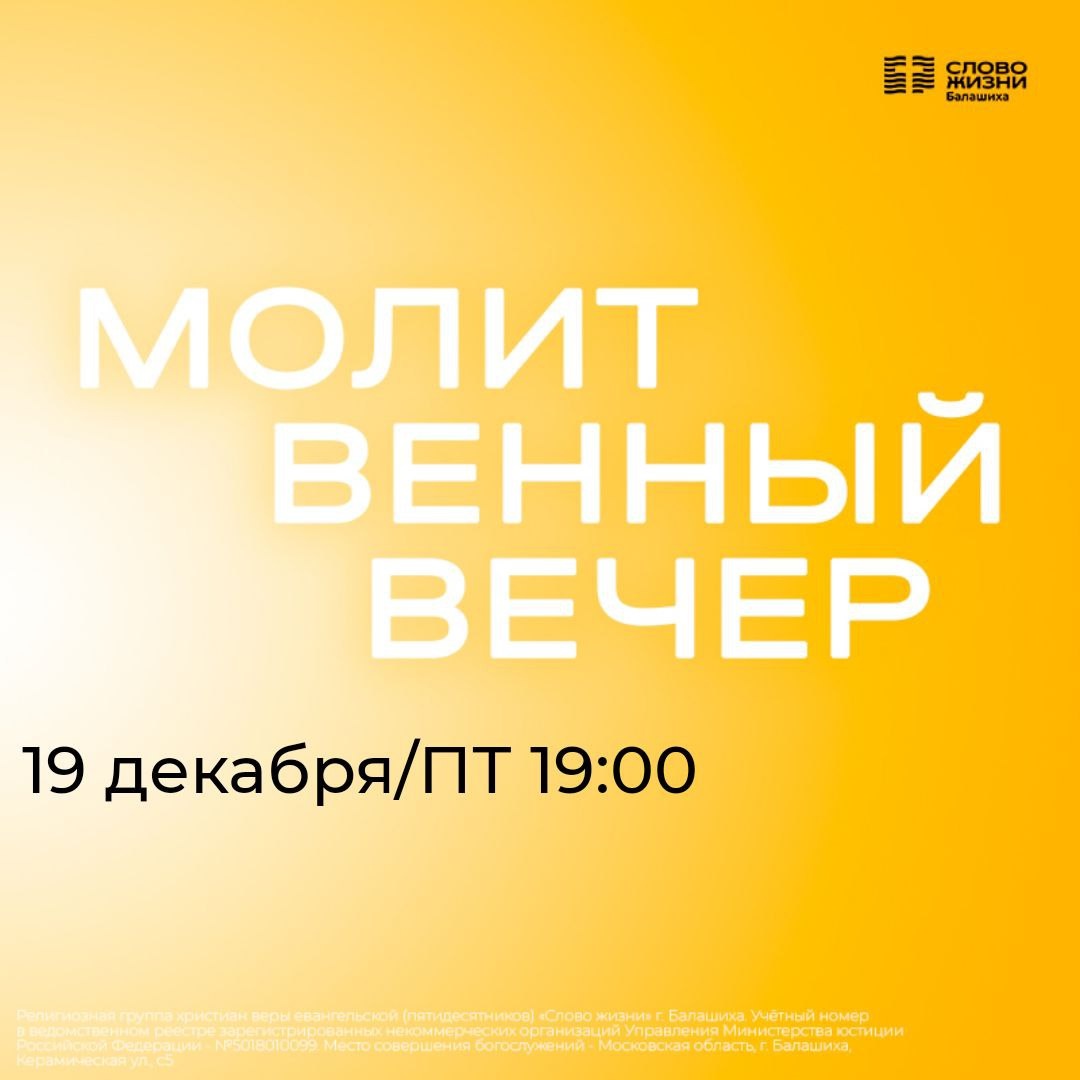 Приглашаем вас завтра, 19 декабря, в 19:00 на молитвенный вечер в церкви
