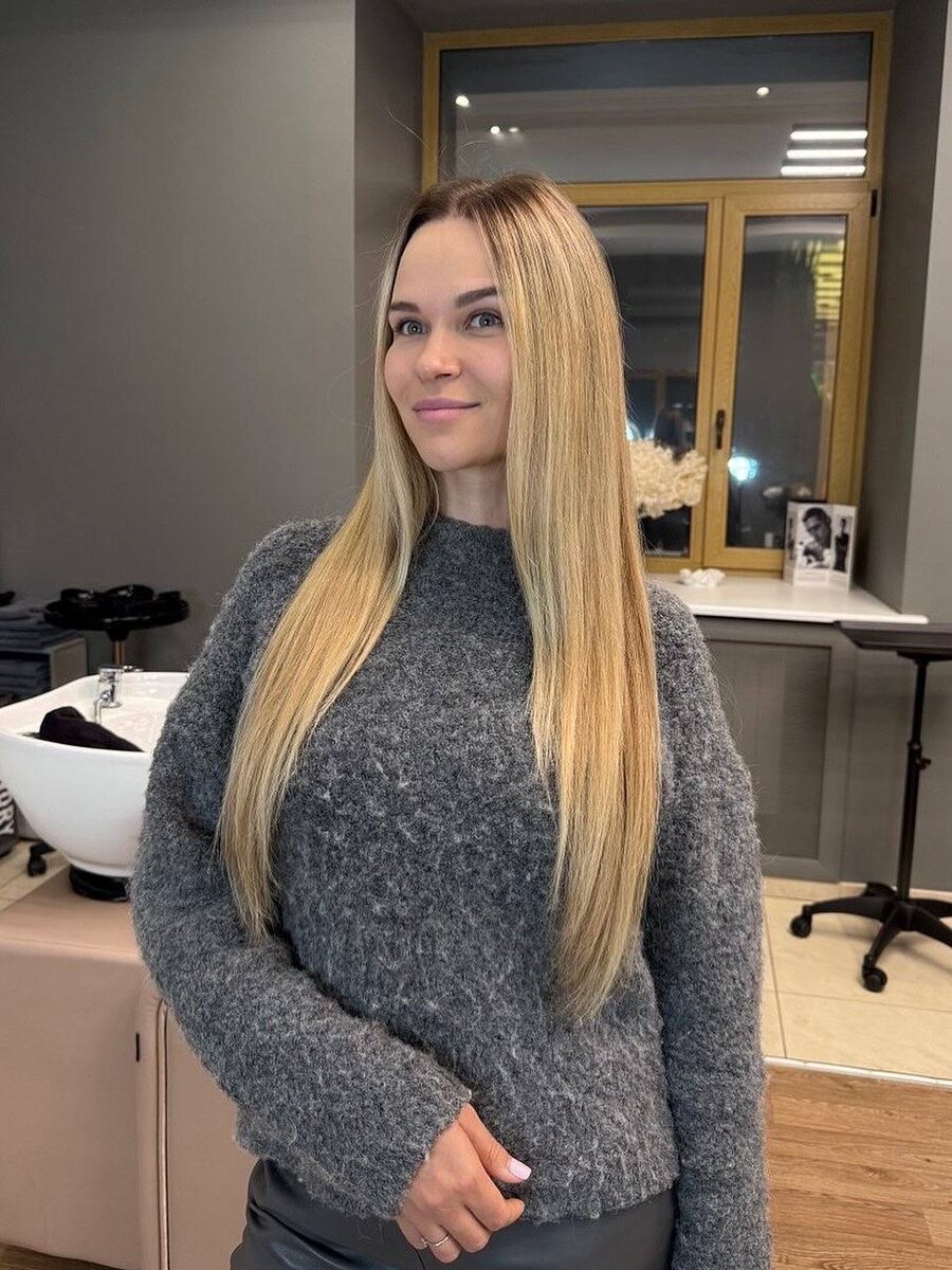 Процедура глубокого увлажнения и восстановления структуры волоса, которая помогает сохранить качество волос даже при осветлениях. Пациентка выполняла процедуру гидропластики на протяжении 2 лет — всего около 12 процедур. За это время были осветления, стрижки, смена длины, но главное — удалось отрастить длинные волосы и сохранить чистый блонд без потери качества. Что даёт гидропластика: • восстановление структуры волоса • плотность, гладкость и блеск • защита волос при окрашиваниях и осветлениях • ухоженный вид без утяжеления На фото — результат до / после: ухоженные, эластичные волосы с живым, здоровым видом 🤍
