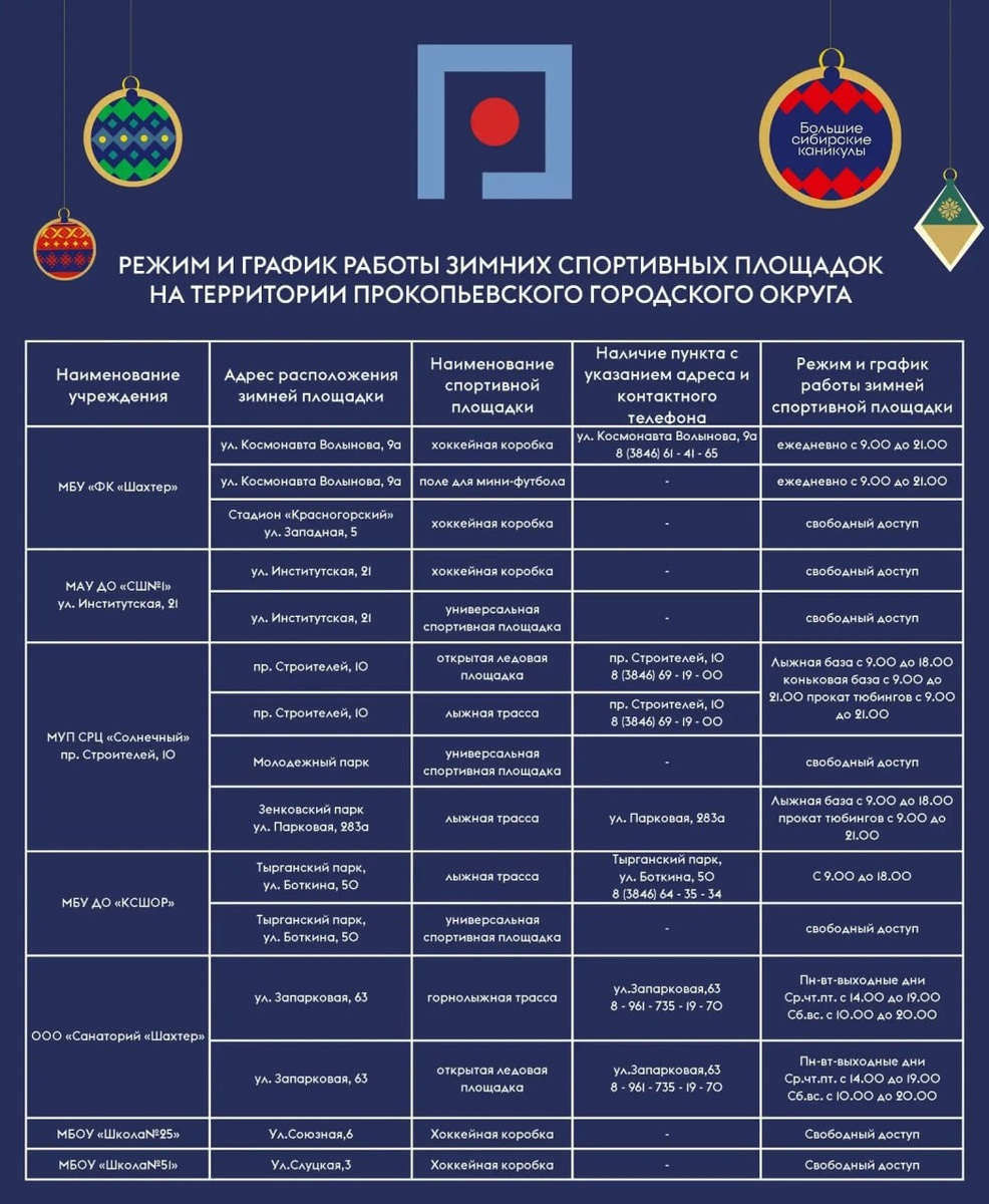 Опубликовано расписание работы спортивных площадок в Прокопьевске.