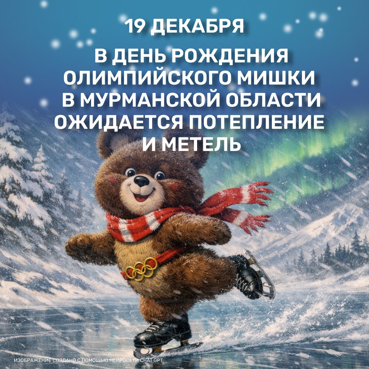 🌬❄ В Кольском Заполярье 19 декабря, в День рождения Олимпийского Мишки и День рождения линолеума, ожидается облачная с прояснениями погода