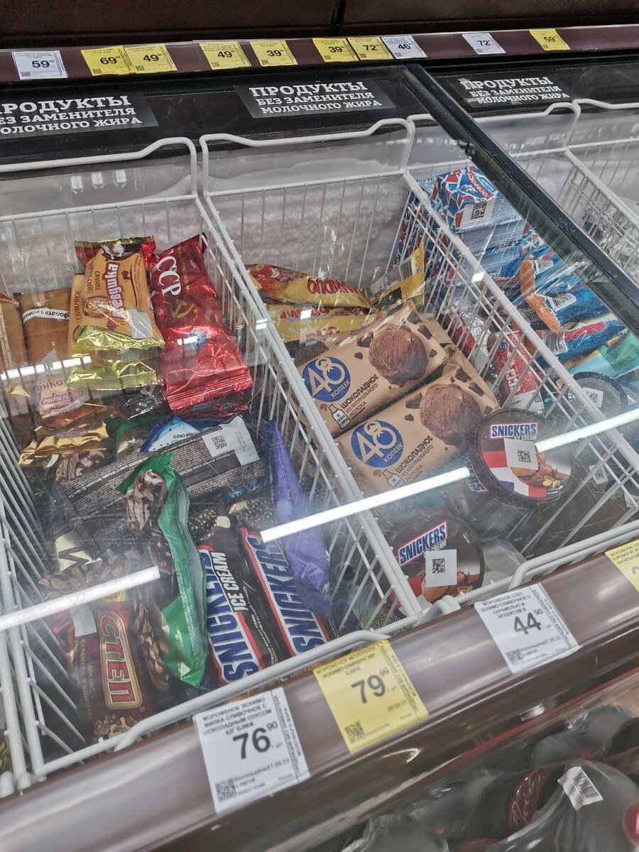 Первое, что бросилось в глаза – мороженое! 🍧 И цены, надо сказать, приятные. Какие-то стаканчики за копейки, "Сникерс" дешевле, чем в "Пятерочке". 🤔