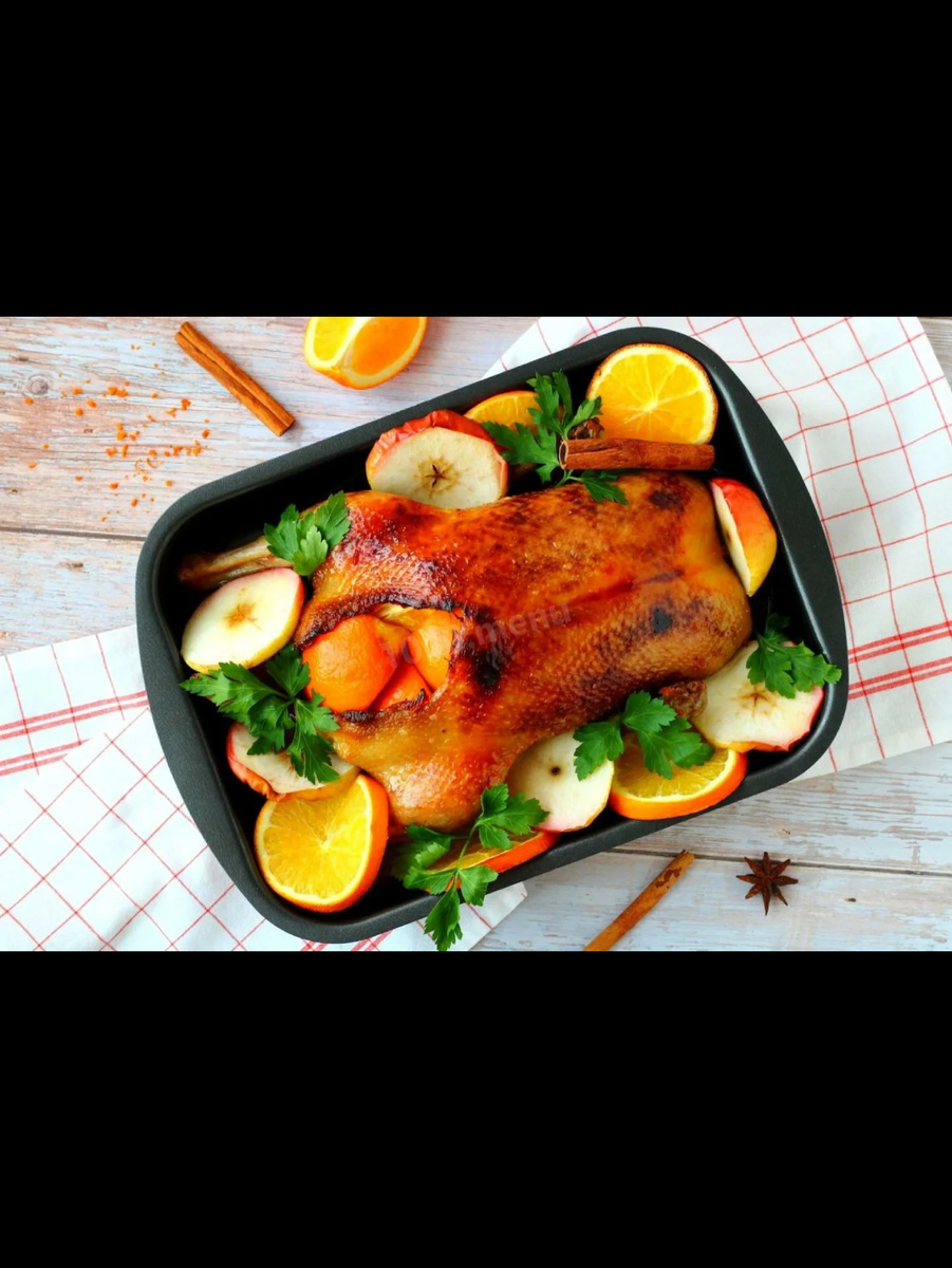 - Положите внутрь утки нарезанные овощи и фрукты.