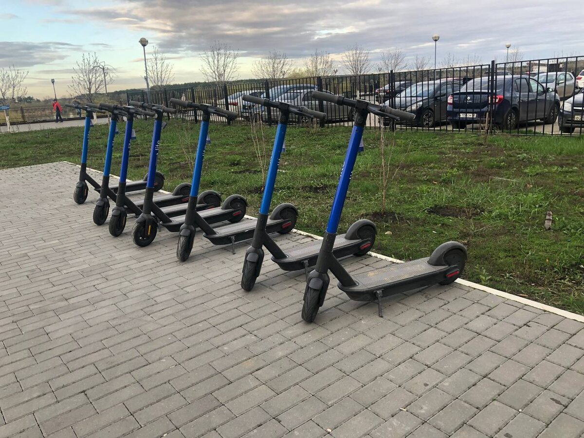Парк самокатов сервиса состоит из моделей NineBot MAX PRO, выкрашенных в фирменные яркие цвета. Привлекают к себе внимание. Как я понимаю, аналогичные модели использует сервис «Green Bee». Приятные самокаты, которыми легко управлять, и конструкция которых вызывают доверия. Крепкие.