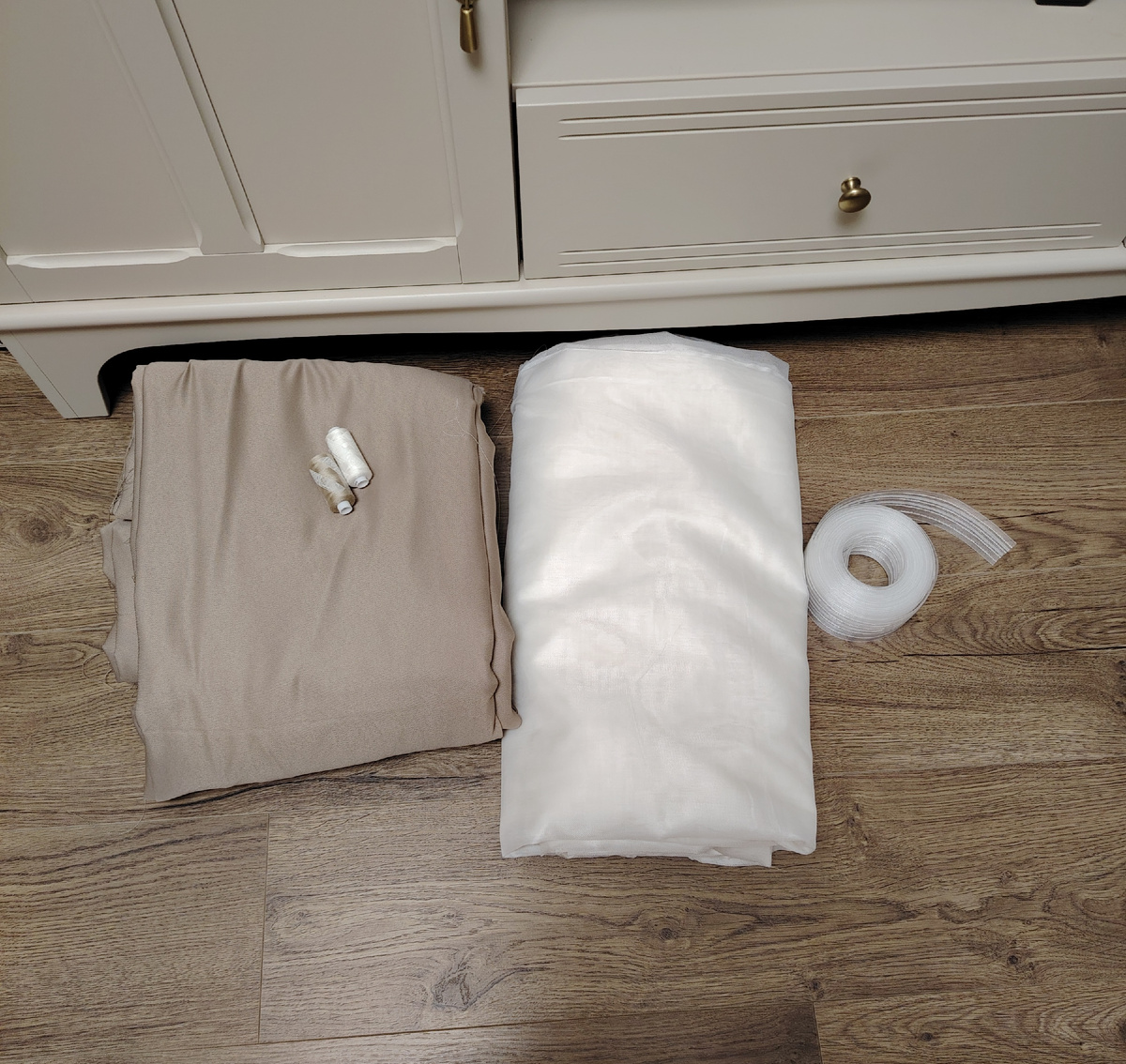 Купила ткань на шторы, тюль, шторную ленту и нитки.