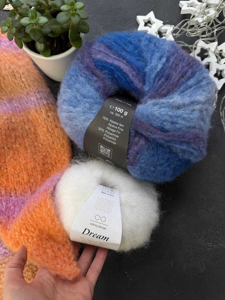 На наш Шарф с кончиками обычно хватает 1 мотка Gigante.