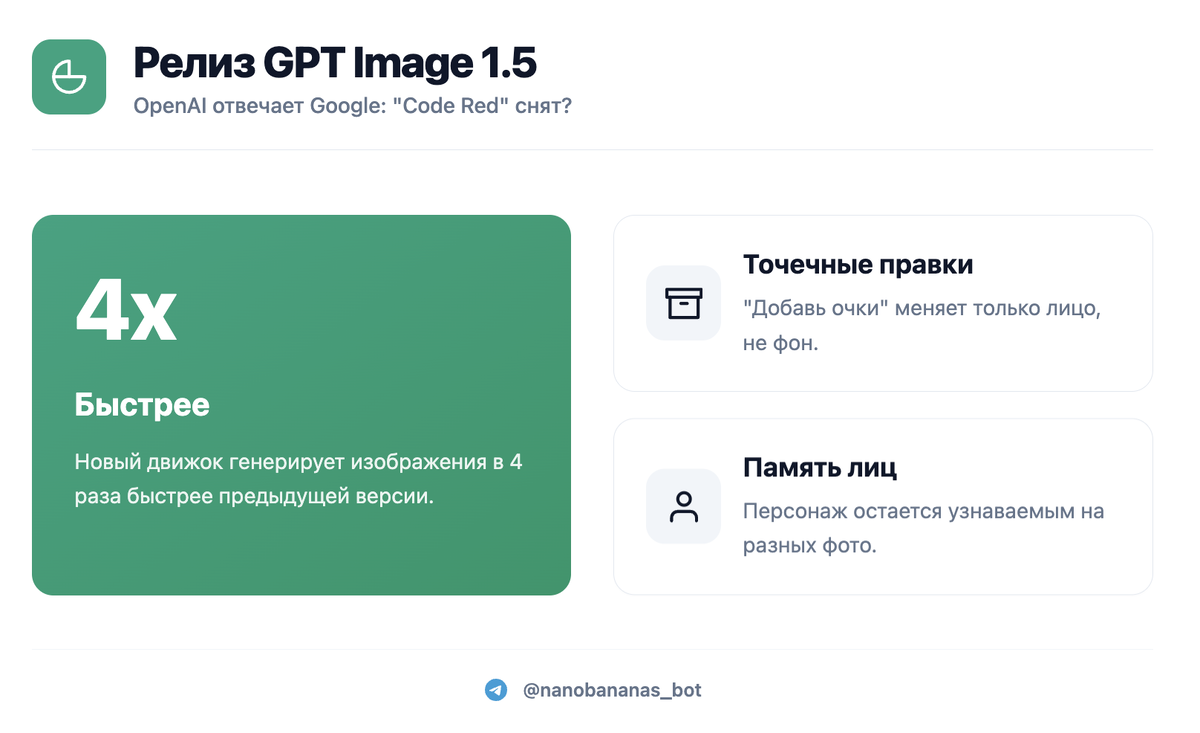 Вывод: Для фоток "как живых" — Nano Banana Pro. Для экспериментов и правок по 10 раз — GPT Image 1.5. Обе модели есть в @nanobananas_bot — без VPN, без танцев с бубном.