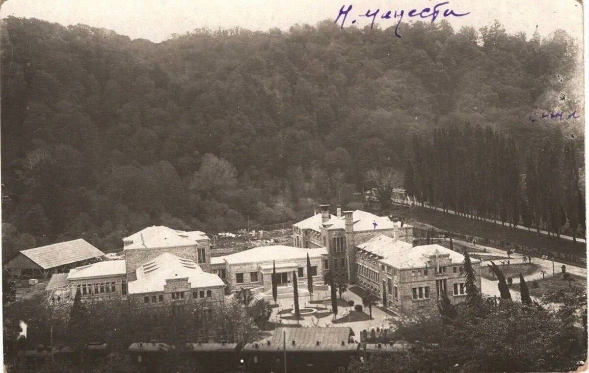 📷 Новая Мацеста. 1932-1934. Внизу видны вагоны "ванного поезда", а справа тополевая аллея и старый мост через р. Мацеста.