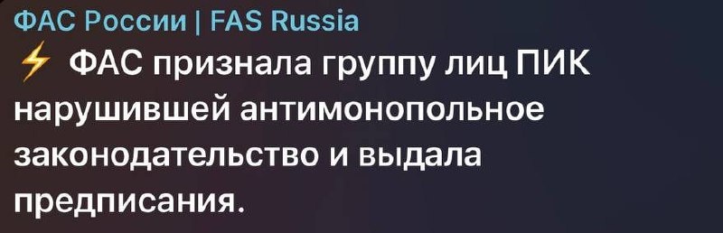 🪖 ФАС признала группу ПИК нарушившей антимонопольное законодательство и потребовала обеспечить интернет-провайдерам доступ для размещения