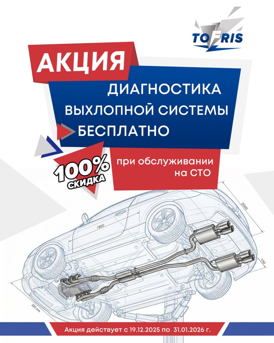 ! Холода — серьёзное испытание для выхлопной системы. Соль, реагенты и перепады температур ускоряют коррозию и могут усугубить скрытые проблемы. С 19 декабря 2025 по 31 января 2026 мы дарим возможность полностью БЕСПЛАТНО проверить здоровье выхлопа вашего автомобиля! 🔍 Что входит в диагностику? Визуальный осмотр целостности труб, глушителя и креплений. Проверка герметичности системы на наличие утечек. Контроль состояния подвесов (подушек) выхлопной системы. Проверка целостности видеоэндоскопом Консультация мастера по результатам и рекомендации по ремонту (при необходимости). Почему это важно сделать СЕЙЧАС? Чтобы небольшая трещина или начинающаяся коррозия не превратились зимой в срочный и дорогой ремонт на обочине. Сигналы, что вашей выхлопной системе нужна проверка: 🔸 Увеличился расход топлива 🔸 Появился посторонний звон, дребезг или стал громче звук выхлопа 🔸 В салон проникает запах выхлопных газов 🔸 Под автомобилем появились следы конденсата или копоти в необычных ме
