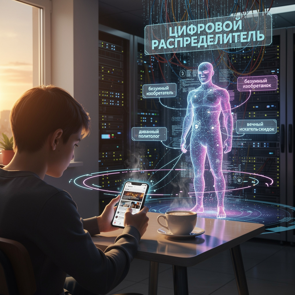 Казалось бы, мы заходим в приложение просто почитать новости за утренним кофе. Но в этот самый момент по ту сторону экрана происходит нечто пугающее и одновременно гениальное. Пока ты скроллишь ленту, бездушная машина внимательно следит за движением твоего пальца. Задержался на секунду? Кликнул? Пролистал, сморщив нос? Все записано. Прямо сейчас где-то на серверах формируется твой цифровой двойник. И этому двойнику уже присвоили ярлык. Кто ты для системы: безумный изобретатель, диванный политолог или вечный искатель скидок? Давай разбираться, как работает этот «Цифровой Распределитель» и почему от него не скрыться. Давай сразу отбросим мистику. Никакого мага с хрустальным шаром в офисе IT-гигантов не сидит. Всё работает на чистой математике, которую мы сейчас разложим на пальцах. Представь, что весь Дзен — это гигантский супермаркет. Только вместо колбасы и хлеба там лежат статьи про черные дыры, скандалы звезд, новые процессоры и рецепты борща. Ты заходишь в этот магазин с пустой те