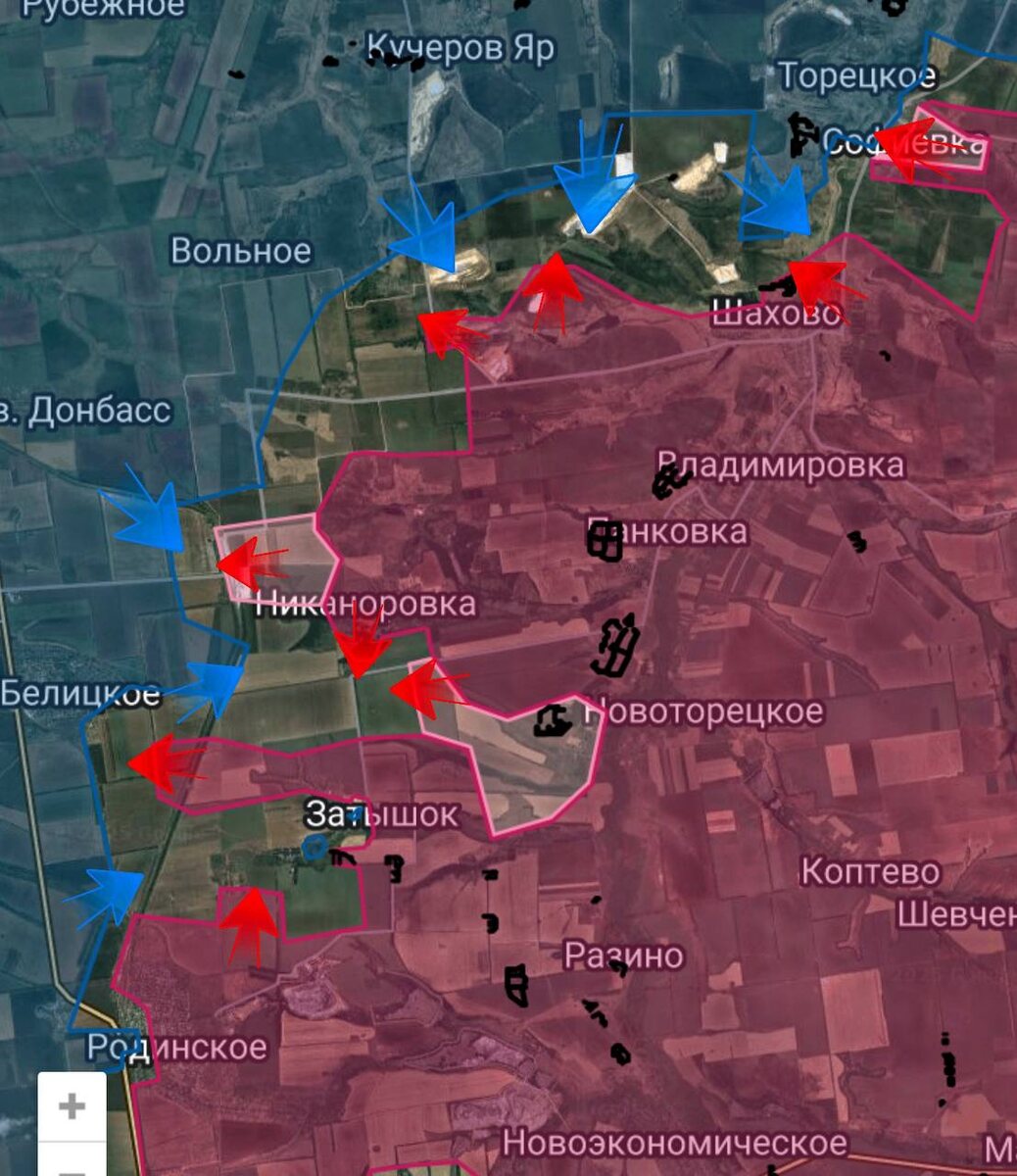 Обстановка на выступе сложная, у нас есть локальные успехи с западной стороны выступа, в то время на северных окраинах большая часть ушла в серую зону. ▫️ С западной стороны выступа у Никаноровки и Дорожного в ходе успешных штурмовых действий нашим бойцам удалось освободить два эти населённых пункта и расширить контроль территории в балке южнее сёл. ▫️ Суворово наше, по противник присутствует у окраин села, в то же время Сухецкое в контроле 50/50. ▫️ На северном охвате у карьеров северо-восточнее Нового Шахово и северо-западнее Октябрьского (Шахово) противник засел на высотах, от карьеров до Октябрьского серая зона. ▫️ В Софиевке восточная часть села за нами, центр в серой, одна улица на западной окраине за хохлом. Брать в лоб этот участок нет смысла, так как противник пока находится на высотах. ▫️ Дневник Десантника 📲 Дневник Десантника в МАХ