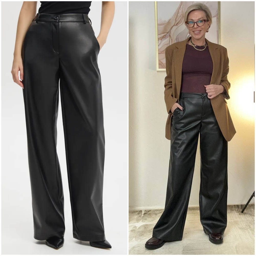 Здравствуйте, дорогие читатели! Меня зовут Ирина, я - стилист, и на этом канале показываю одежду и аксессуары с Wildberries такими, как они есть, то есть, из серии "ожидание/реальность". Мои параметры: рост 169 см, вес 67 кг, 94-74-100 ✅Основной канал: Стильно - не значит дорого! Ставьте лайк в поддержку канала, и давайте смотреть на мою сегодняшнюю покупку. Эти брюки доказывают, что кожаный look может быть не только дерзким, но и элегантно-сдержанным. Чёрная экокожа с матовой, почти бархатистой поверхностью выглядит благородно, без намёка на излишний блеск или агрессию. Прямой крой и высокая посадка создают строгий, почти архитектурный силуэт, который не обтягивает, а красиво драпируется, подчёркивая талию и создавая иллюзию длинных ног. Материал — плотный, но приятно пластичный. Он не скрипит, не стесняет движений и отлично держит форму, не образуя нежелательных складок на коленях. Резинка на спинке и шлёвки для ремня продуманы до мелочей — посадка получается идеальной, без дискомфор