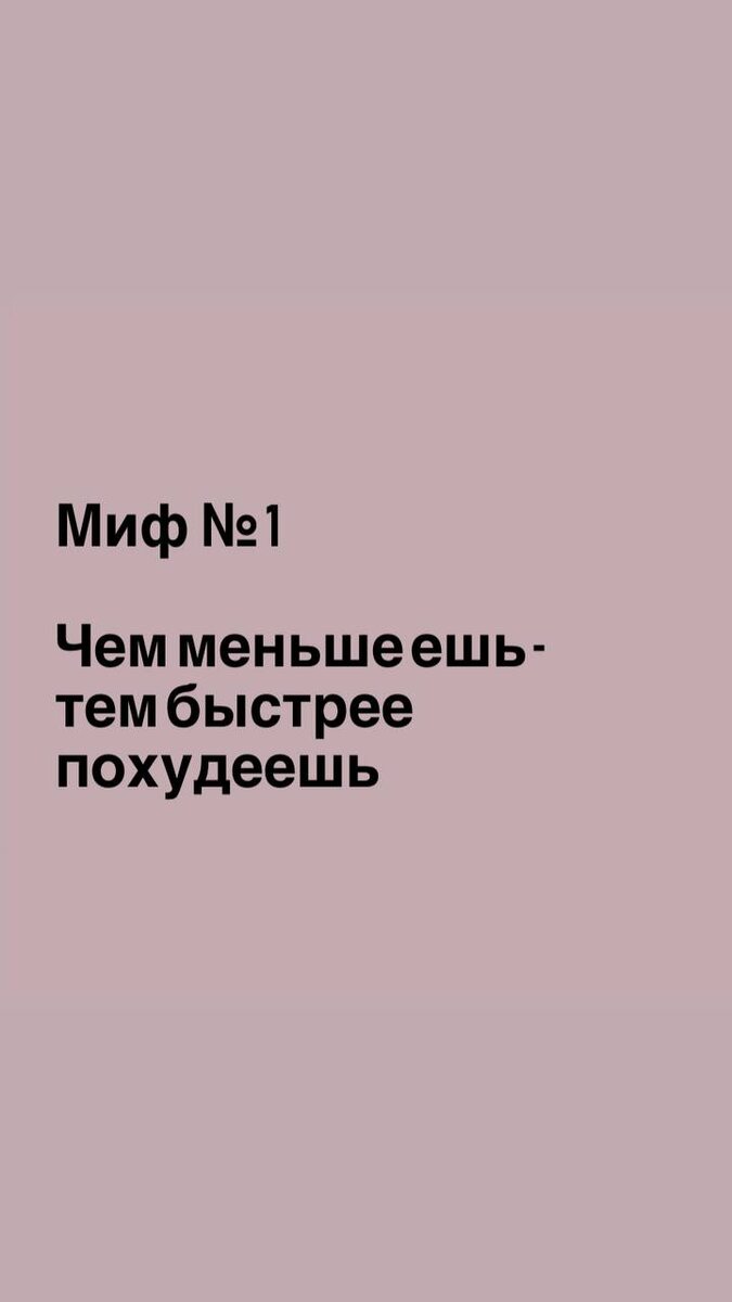 » Миф: Чтобы сбросить вес, нужно сильно урезать калории — например, до 800–1000 ккал в день. Почему это не так: Крайний дефицит калорий запускает режим «экономии»: метаболизм замедляется, организм начинает беречь жировые запасы, а мышечная масса уходит. В итоге вес сначала падает, а потом встаёт на плато или возвращается с избытком. Что делать вместо этого: Рассчитайте свою норму калорий (с учётом возраста, веса, активности) и создавайте умеренный дефицит: от 10 % до 20 % от нормы. Ешьте регулярно: 3–4 приёма пищи + 1–2 перекуса. Включайте белок в каждый приём пищи: он сохраняет мышцы и даёт чувство сытости.