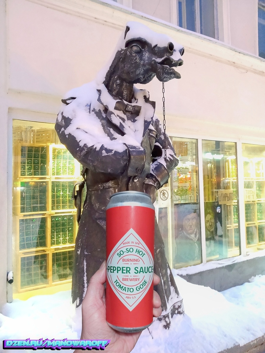 А соус будет в виде пива Pepper Sauce от "суповарни" Burning Brewery. Задизайнено с закосом под классический Табаско. В связи с этим надпись "So-So Hot" смотрится смешно. Впервые это дело сварили в августе сего года. Вот что о своем напитке нам поведали пивовары: Томатное гозе с острым перечным соусом - тонкий баланс, где острого соуса всего пару капель...или больше. Аромат раскрывается сочными спелыми томатами, словно только сорванными с ветки, и лёгкой свежестью гозе. Едва уловимый перечный дымок добавляет интриги. Вкус раскрывается яркой томатной кислинкой, мгновенно смягчённой солоноватой основой гозе. Острота перца томно обволакивает язык: не жгучая, а глубокая, с уксусной нотой и перечной пикантностью. Соль подчёркивает сочность помидора, а постепенное тепло в горле создаёт ощущение динамики: от прохлады к дразнящему жару. Послевкусие кисло-солёное, освежающее, с лёгким перечным шлейфом. Вкусно описано. Но будет ли вкусно в реале? Сейчас и узнаем. На момент дегустации пиву было