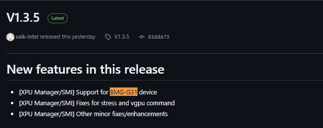 В утилите Intel XPU Manager 1.3.5 появилась поддержка графического процессора BMG-G31 — старшего чипа поколения Battlemage, известного как