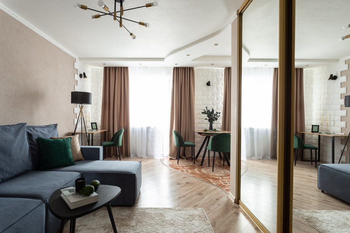 Вторичное жилье, которое требовало преображения. К нам обратился собственник, который приобрел 1к квартиру с просьбой обновить ее и забрать в посуточную аренду. Наш дизайнер составил проект, а далее собственник своими силами проводил ремонт и оснащение. Обычно мы ведем все работы под ключ. Но в этот раз сделали только частичный вклад. Теперь квартира готова принимать гостей на новогодние праздники.