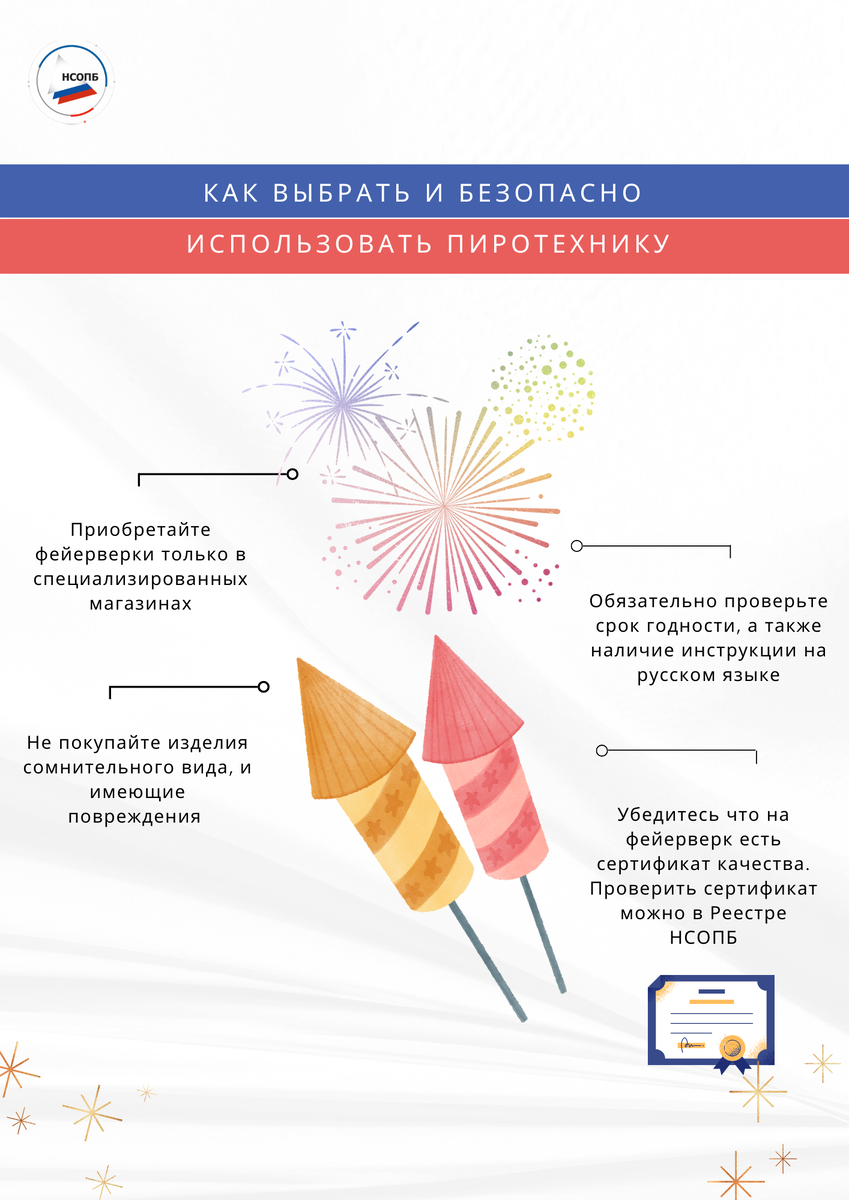 В преддверии новогодних праздников фейерверки и салюты становятся неотъемлемой частью торжества. При этом важно помнить: неверный выбор пиротехнических изделий или нарушение правил их применения может привести к пожарам, травмам и другим опасным последствиям. По данным МЧС России, порядка 44 % пожаров в праздничные дни связаны с неосторожным обращением с огнём. Дополнительную угрозу создают легковоспламеняющиеся новогодние украшения и использование несертифицированной пиротехнической продукции. Общественное министерство пожарной безопасности НСОПБ подготовило рекомендации, которые помогут выбрать безопасную пиротехнику и правильно её использовать. Где приобретать пиротехнические изделия В сезон праздников торговые точки с салютами появляются повсеместно, однако не каждая из них отвечает требованиям безопасности. Чтобы снизить риски, следует соблюдать несколько правил: