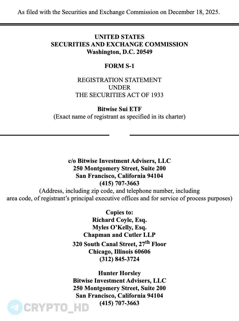 π₯ #SUI ΠΠΎΠΌΠΏΠ°Π½ΠΈΡ Bitwise ΠΏΠΎΠ΄Π°Π»Π° Π² SEC Π·Π°ΡΠ²ΠΊΡ Π½Π° Π·Π°ΠΏΡΡΠΊ Sui ETF (Π΄ΠΎΠΊΡΠΌΠ΅Π½Ρ)