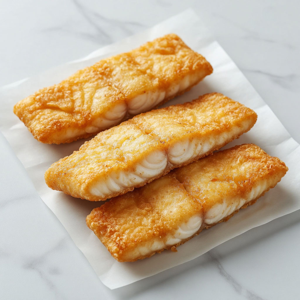 - Сухой филе — залог хрустящего кляра. Если рыба влажная, кляр будет стекать.