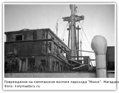 Несмотря на то что Магадан своевременно спрятался от моря, вернее, от бухты Нагаева, с которой зимой нередко дуют штормовые, валящие с ног ветры, как бы отгородившись от нее невысоким, правда, водоразделом между бухтой и р. Магаданом, он все же заметно пострадал от взрыва. Во многих домах города отголосками взрывной волны вышибло стекла в окнах южной стороны. В частности, здание Главного управления Дальстроя лишилось буквально всех стекол в окнах южного фасада.